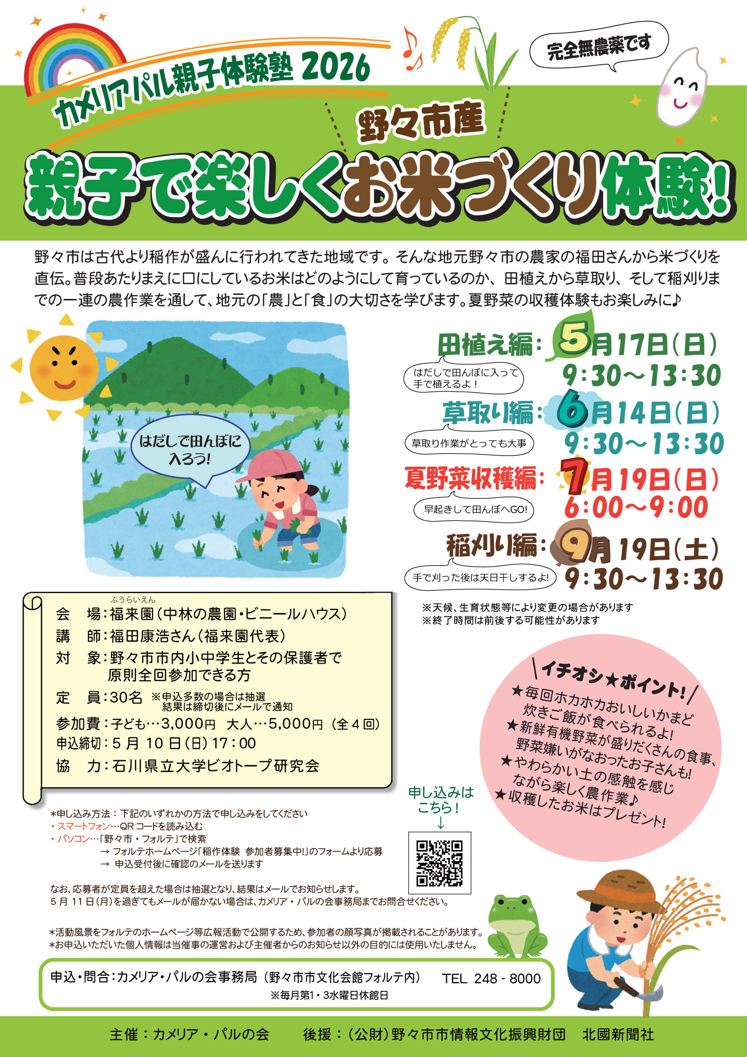 【カメリアパル親子体験塾 2026】親子で楽しくお米作り体験!