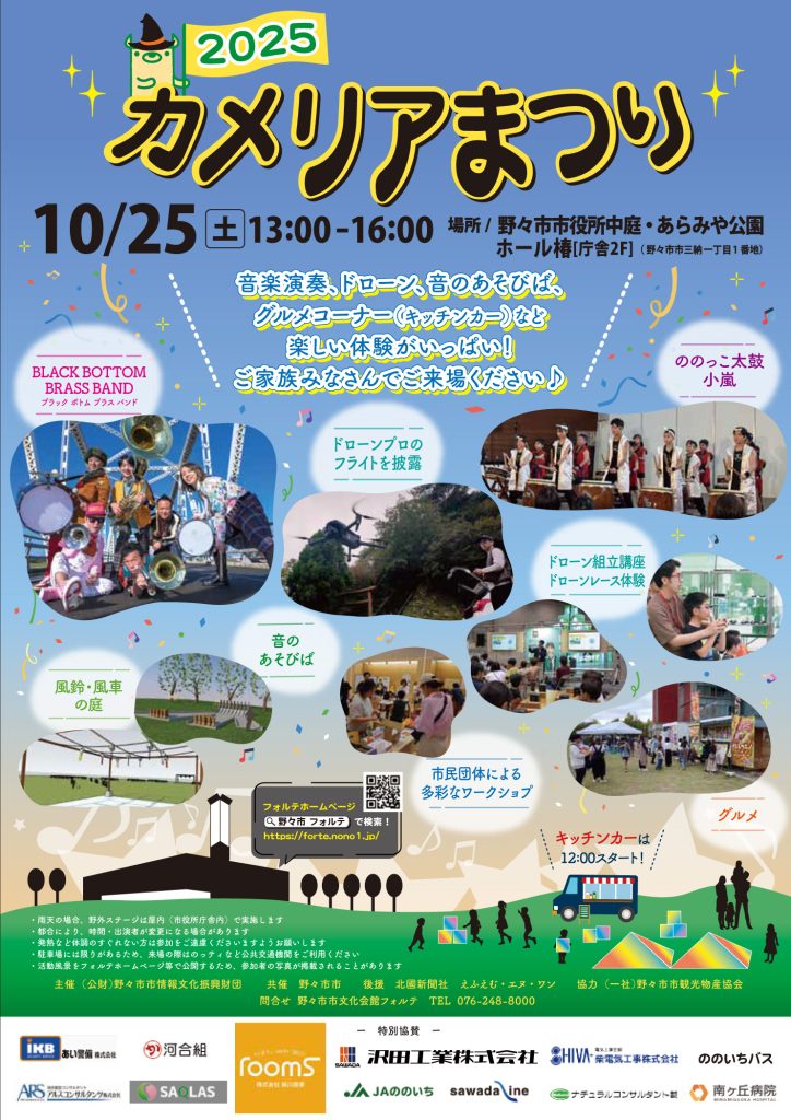 野々市市役所、中庭、あらみや公園を舞台に家族皆さんで楽しめるカメリアまつり、今年も10月25日(土)13時~ 開催します!
