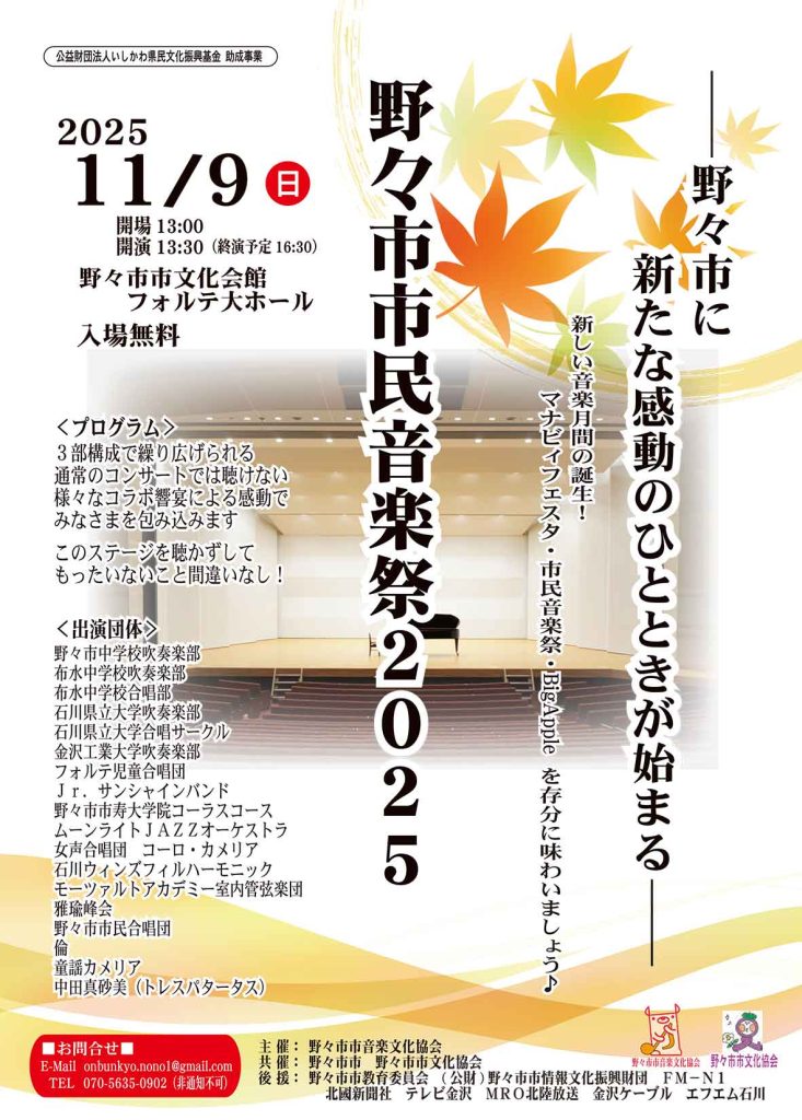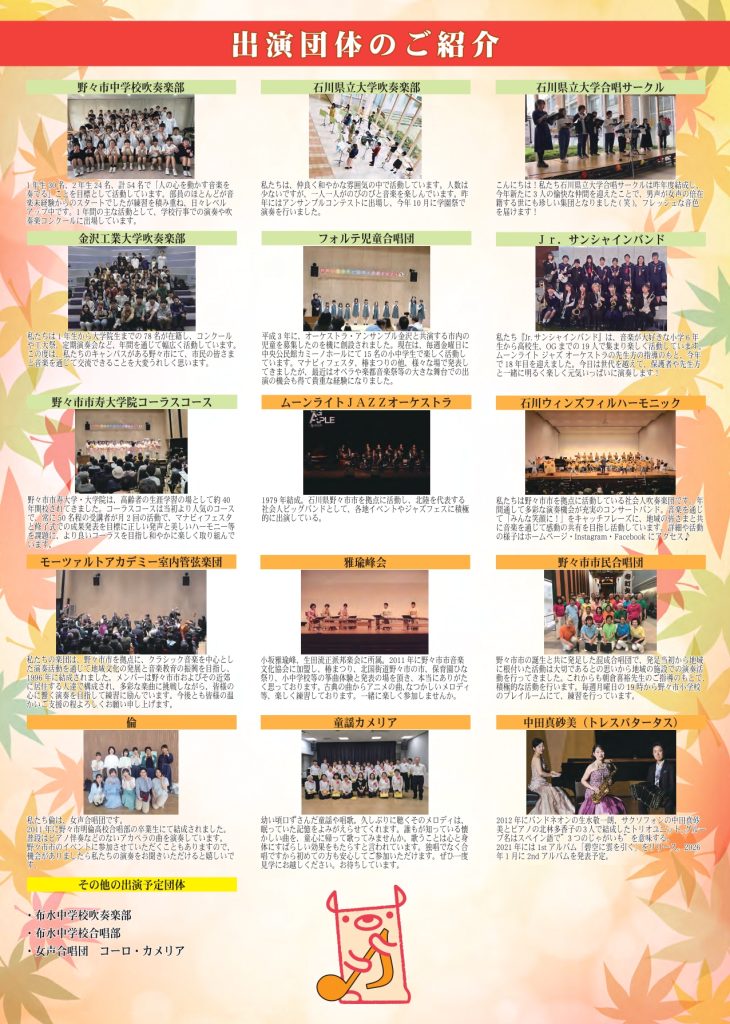 野々市市内の学校含む18の音楽団体による特別なコンサート。