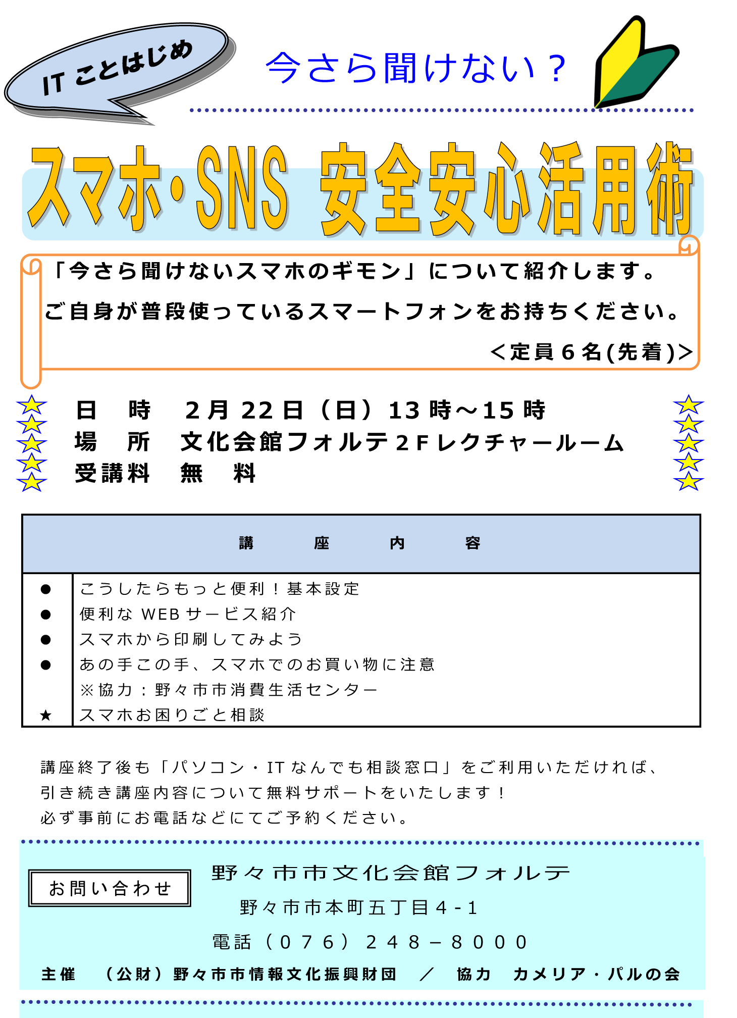 スマホ・SNS 安全安心活用術 参加者募集中!