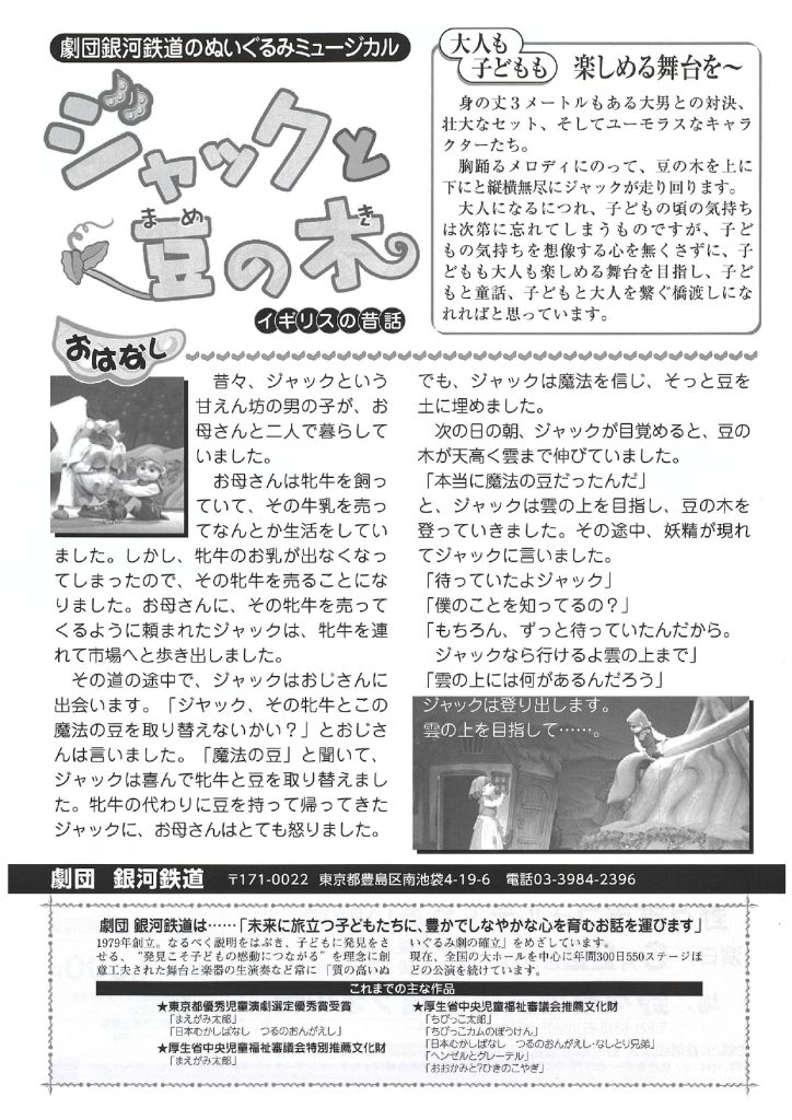 劇団銀河鉄道のぬいぐるみミュージカル「ジャックと豆の木」